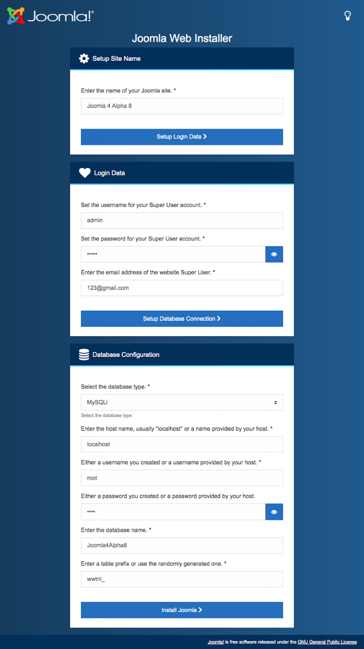 Joomla 4:尽管该版本仍然具有3个步骤,但此改进将帮助用户回顾以前的信息,而不会中断安装过程,并且如果要修改某些内容,则无需再次提交。