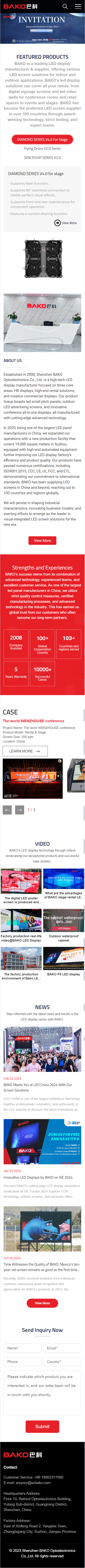 深圳市巴科光电有限公司成立于2008年11月,是一家集LED显示产品研发、生产、销售及解决方案于一体的高新技术企业。公司专注于高清显示、高端租赁、创意商显三大业务板块。核心产品包括LED小间距、高端舞台租赁、户外LED广告屏、会议一体显示屏等产品。
